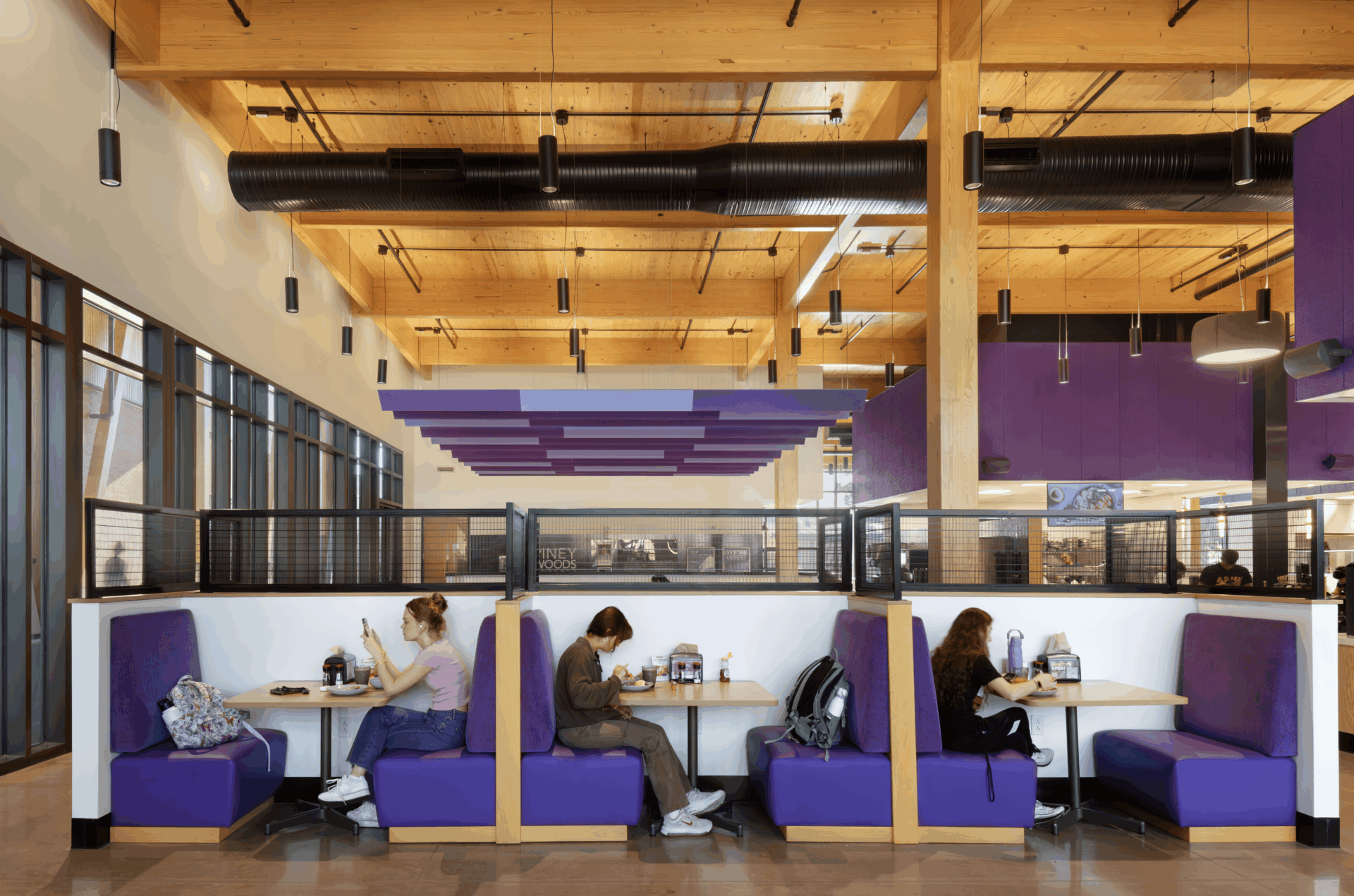 EQUILIBRIUM was the specialty structural engineer for the mass timber scope, leading the design of the timber package and delivering a fully coordinated, fabrication-ready digital model for mass timber supplier Mercer Mass Timber. The structure is composed of exposed glulam columns and beams supporting a cross-laminated timber roof deck, with SYP harvested entirely within 500 miles of campus.